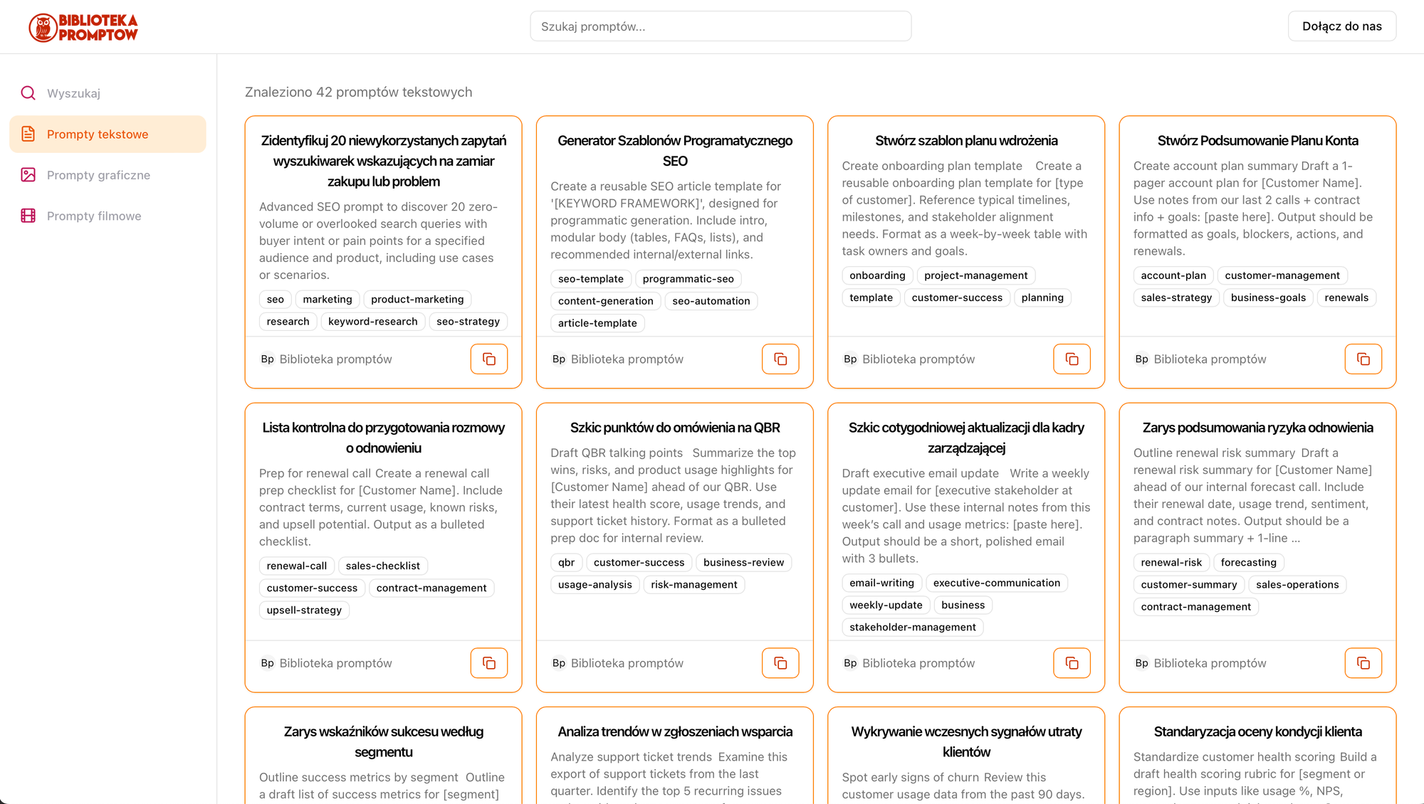 - Kopiowanie jednym kliknięciem – szybki dostęp do promptów bez zbędnych kroków