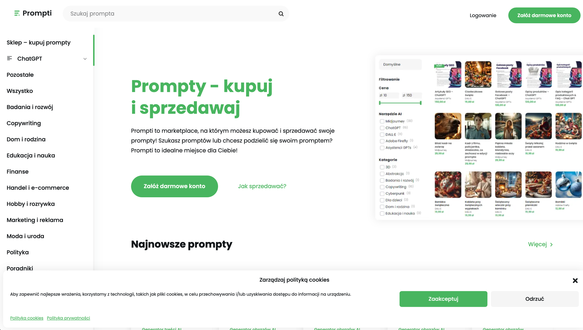 2. Prompti.pl – marketplace z płatnymi promptami dla zaawansowanych użytkowników